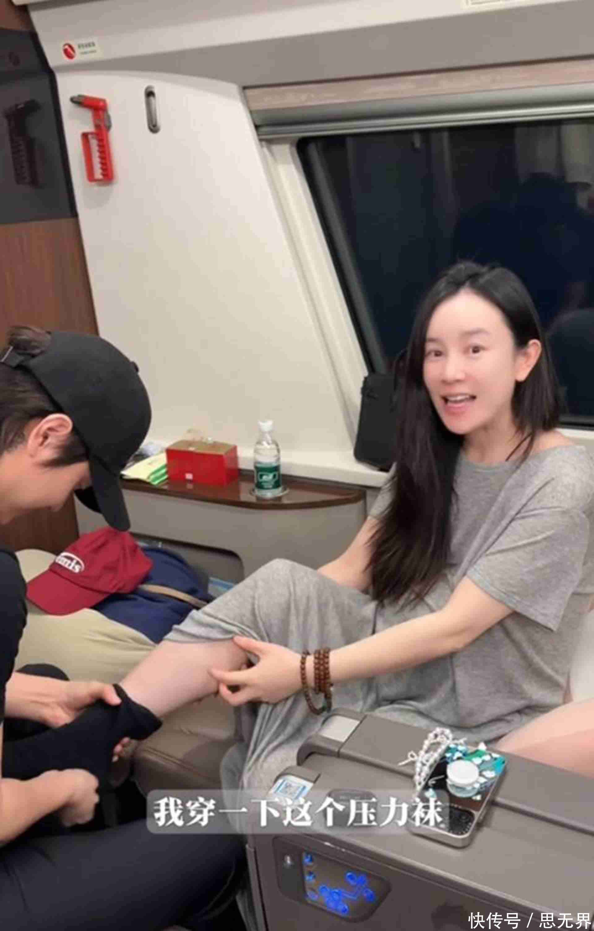 在这整个过程中,小五的贴心照顾可谓是无微不至。他提前安排好整个行程,不僅有小两口,还有两个朋友陪同,更有专人接送。坐上高铁后,小五忙着给老婆“铺床”,还贴心地帮张檬穿压力袜。身为准爸爸的他,一看就提前做了不少功课,把怀孕的妻子照顾得无微不至。
